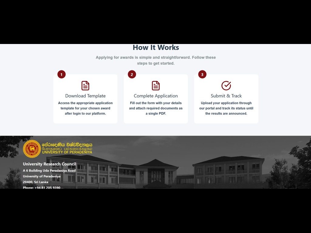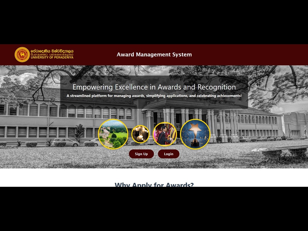 The Award Management System is a sophisticated web application I developed for the University of Peradeniya Research Council to automate and streamline the entire award lifecycle — from application to final approval.